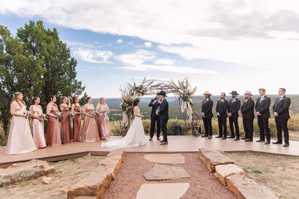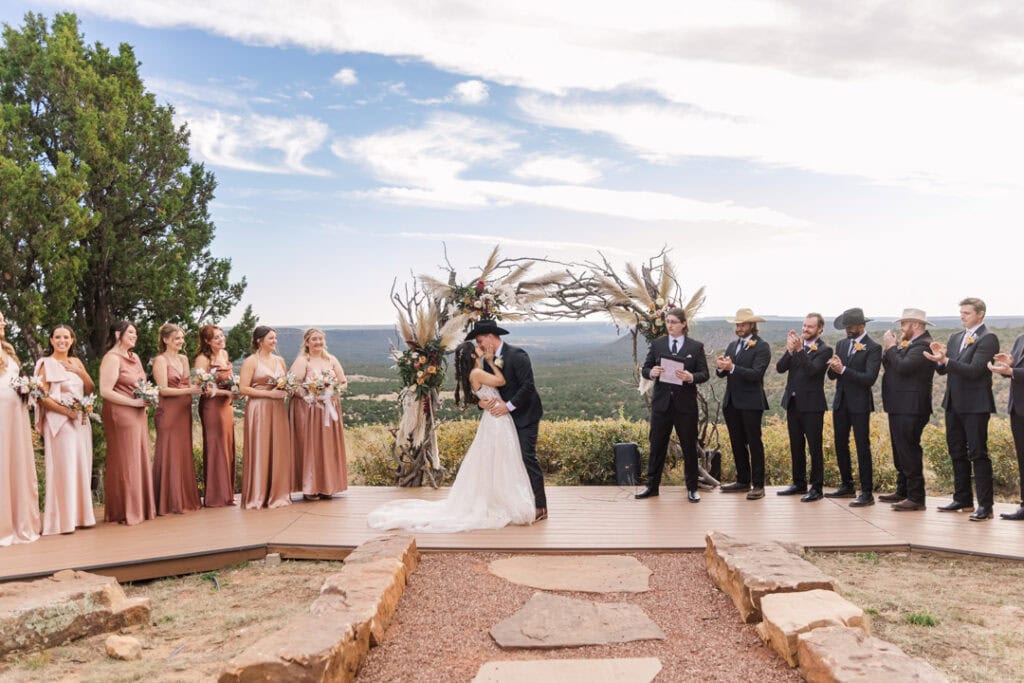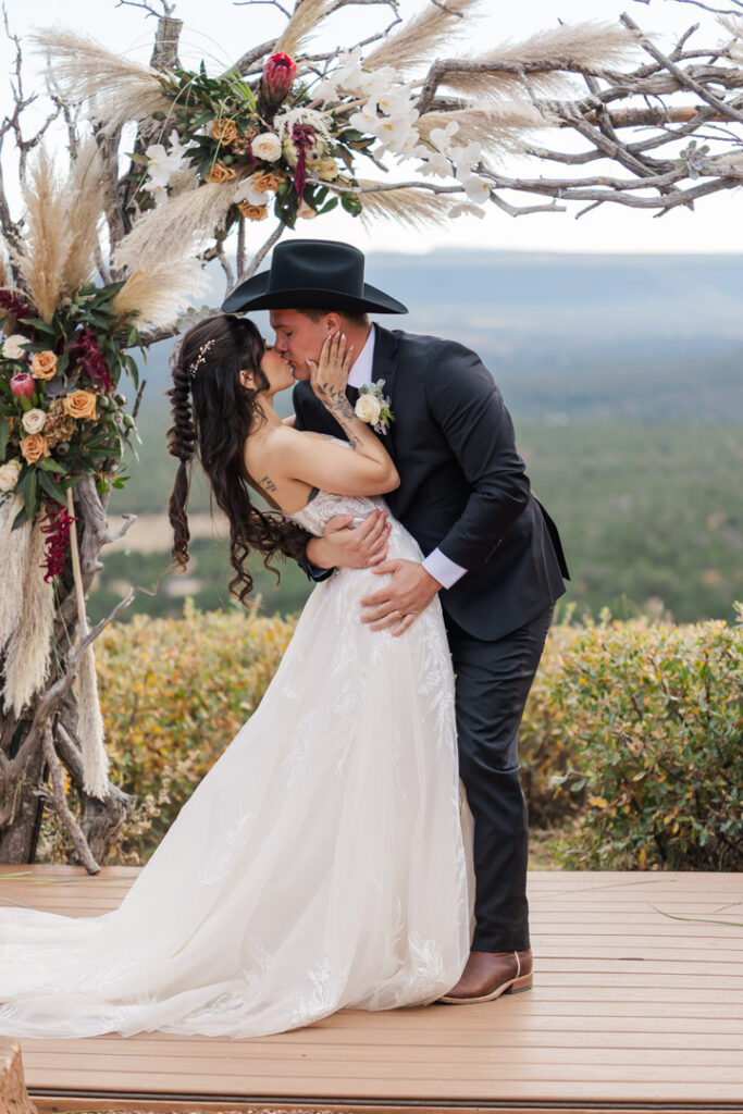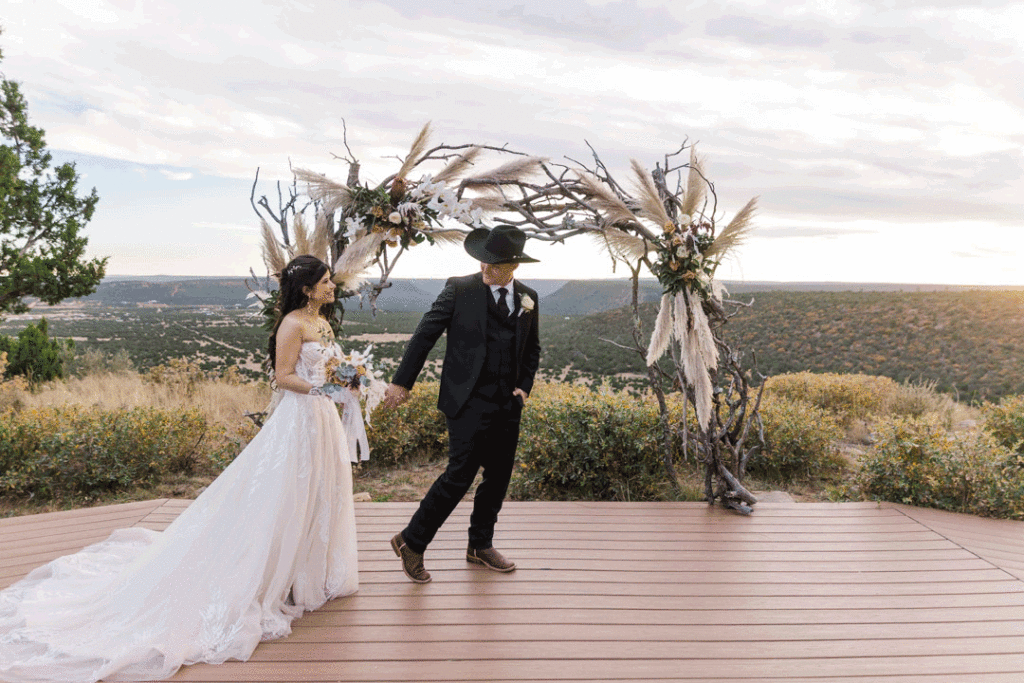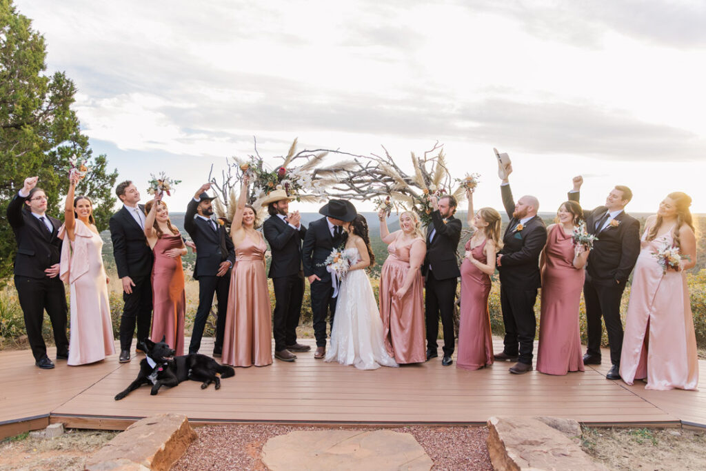 Blame Her Ranch was the perfect venue for that vision. With its sweeping New Mexico landscapes, rustic textures, and laid-back elegance, it allowed everyone to feel at home while still being part of something truly special. Even their puppy, Luffy, joined in on the celebration, bringing a little extra joy and personality to an already heartfelt day.