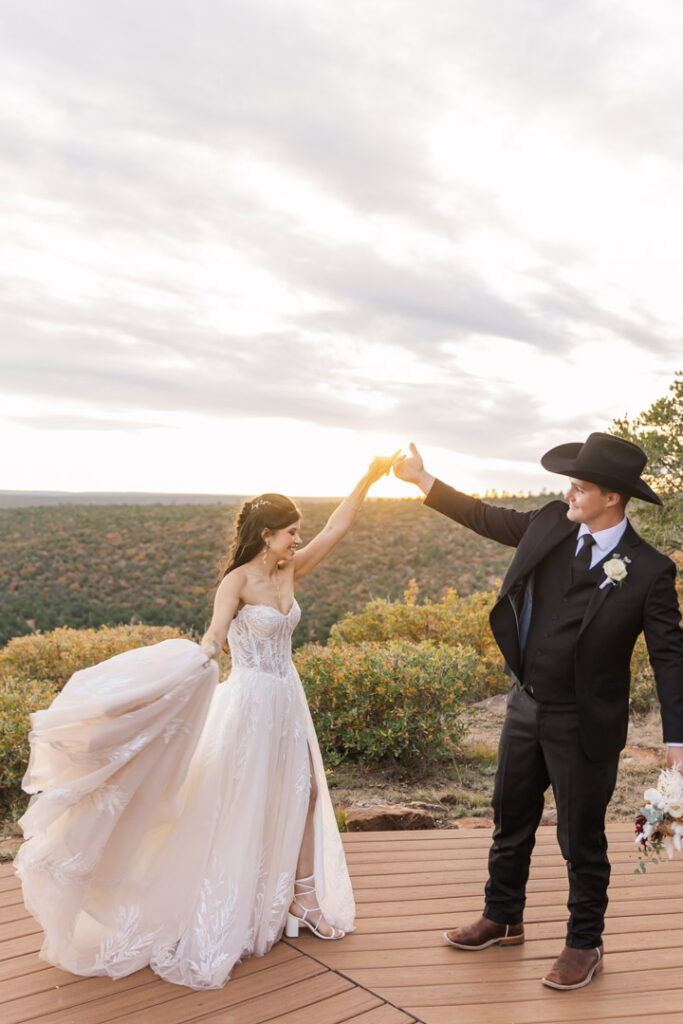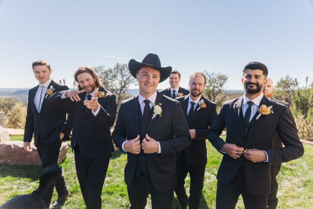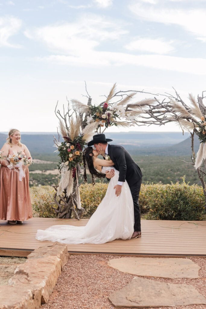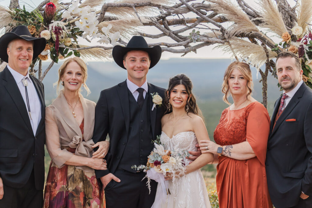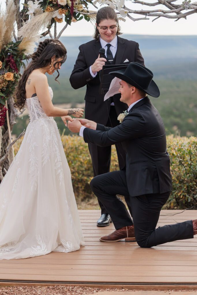 Blame Her Ranch was the perfect venue for that vision. With its sweeping New Mexico landscapes, rustic textures, and laid-back elegance, it allowed everyone to feel at home while still being part of something truly special. Even their puppy, Luffy, joined in on the celebration, bringing a little extra joy and personality to an already heartfelt day.